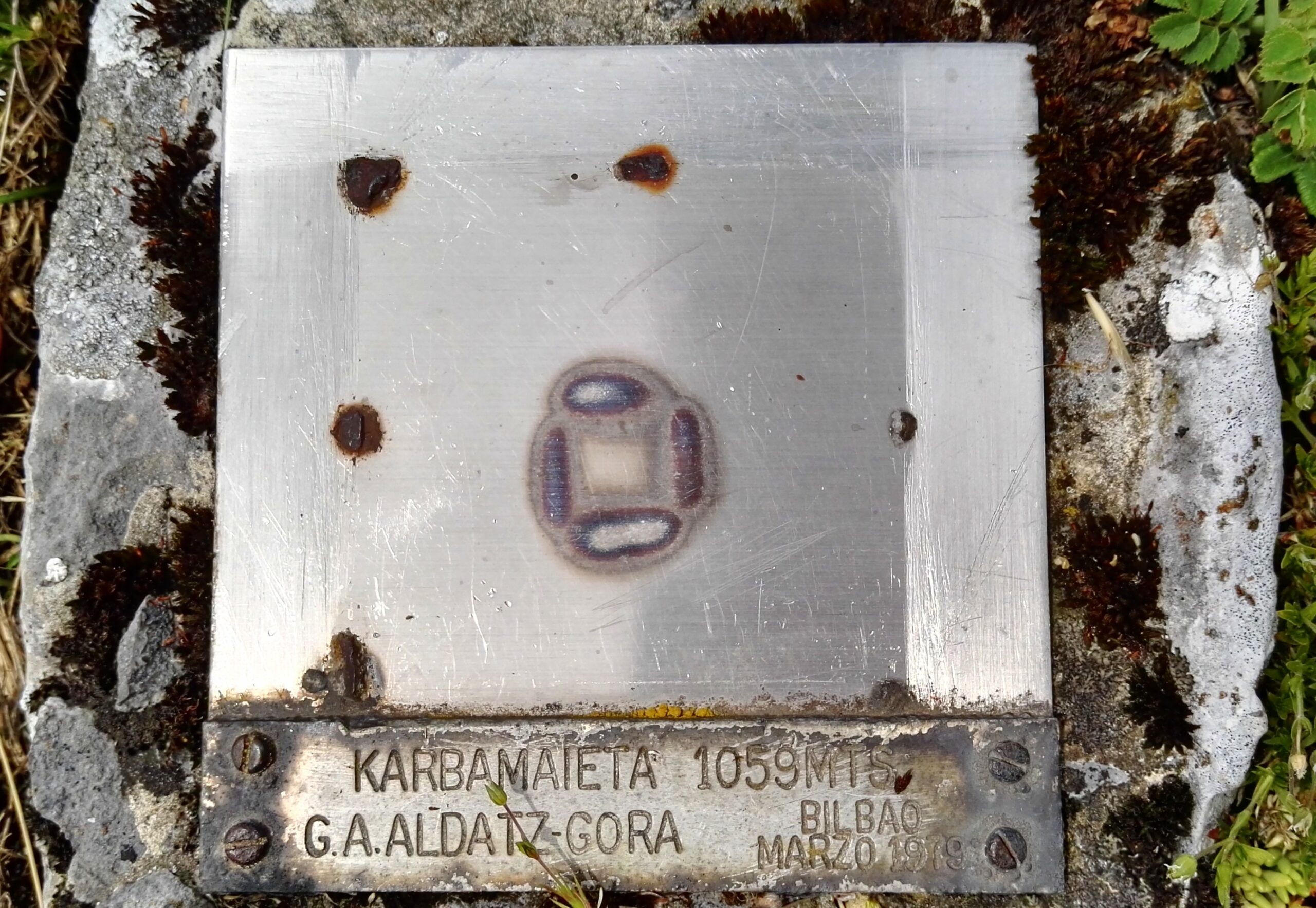 | Texto placa | Monte: KARBAMAIETA Altitud: 1.059 MTS Club o entidad: G.A.ALDATZ-GORA Fecha: BILBAO MARZO 1979 |