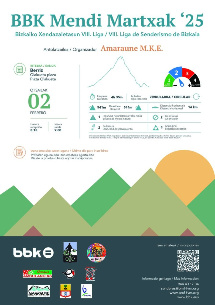 Hemen duzu Amaraune M.K.E. klubak BBK-k babestutako “BBK Mendi Martxak ’25 – Bizkaiako xendazaletasun VIII. liga” ekimenaren barruan antolatutako jardueren informazio guztia.
