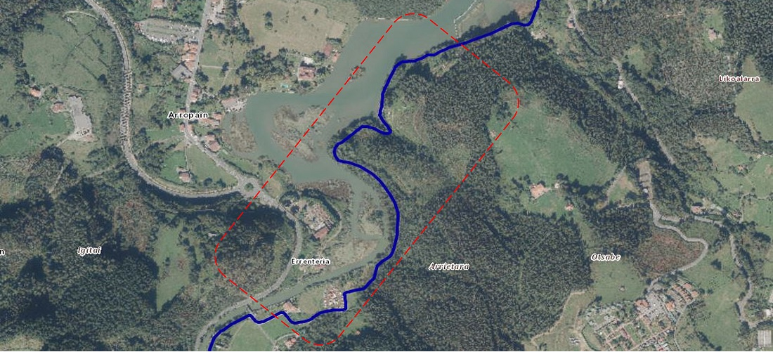 Ospitale zaharretik (19. km) Marierrotara (20,3. km) doan tartean (argazkiko laukizuzen gorriaren barruan) GR® 38.3 saihesbidean; 4 zubi eta pasabide egokitu eta ordezkatu behar direnez, abenduaren 1etik 7ra ibiltzeko itxita geratuko da.